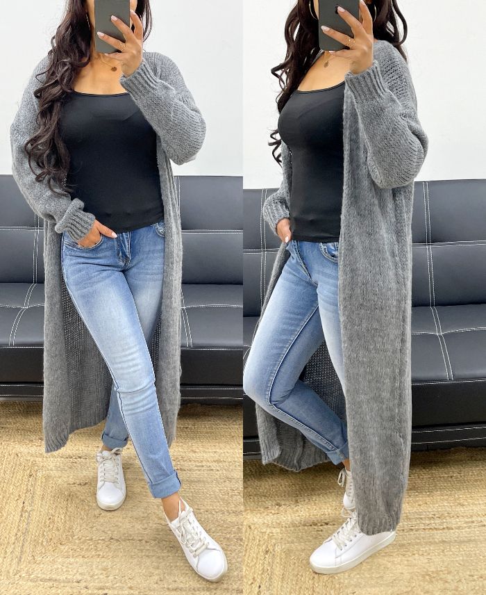 KAMIZELKA Z DŁUGIM DZIANINOWYM AH250329 SZARA