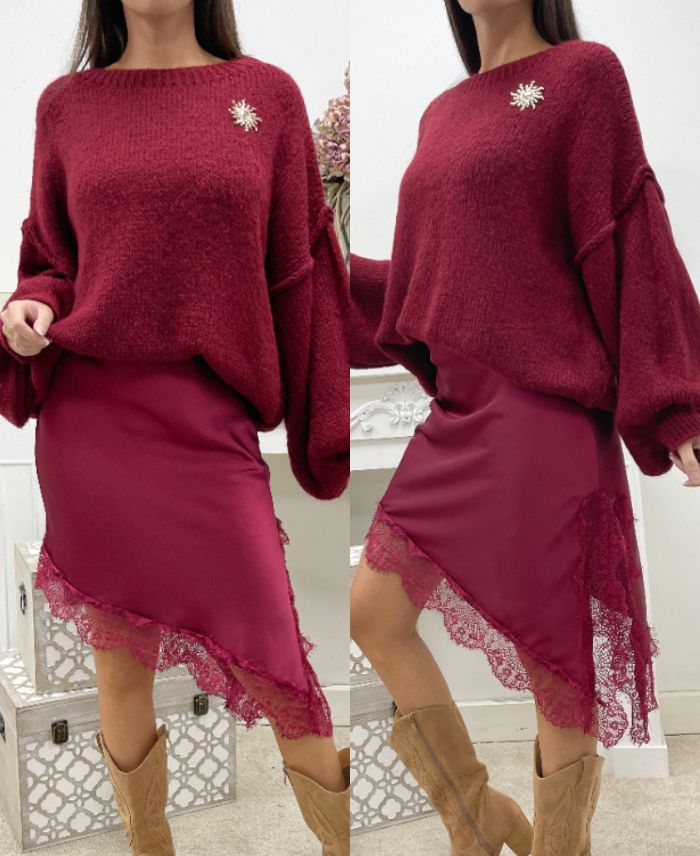 ASYMETRYCZNA KORONKOWA SATYNOWA SPÓDNICA AH36284 BORDOWA