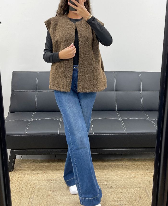 KURTKA WEŁNIANA Z MIĘKKIM WŁOSIEM 2 KIESZENIE AH555019 CZEKOLADOWY
