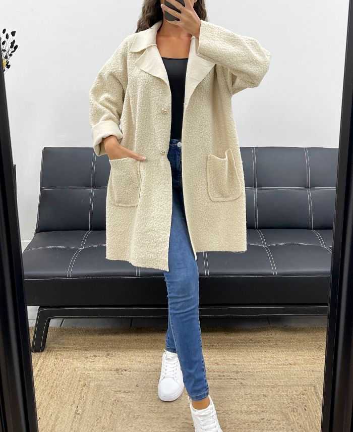 LUŹNA WEŁNIANA KURTKA Z 2 KIESZENIAMI AH2555024 BEŻOWYM