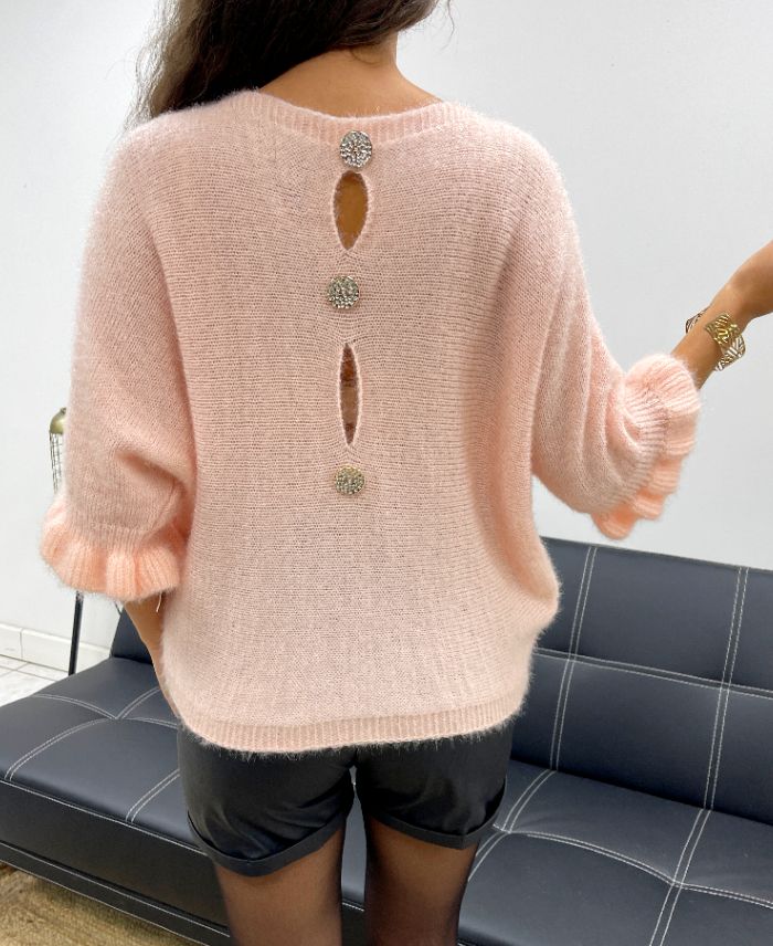 MOHEROWY SWETER Z GUZIKAMI AH2555066 RÓŻOWY