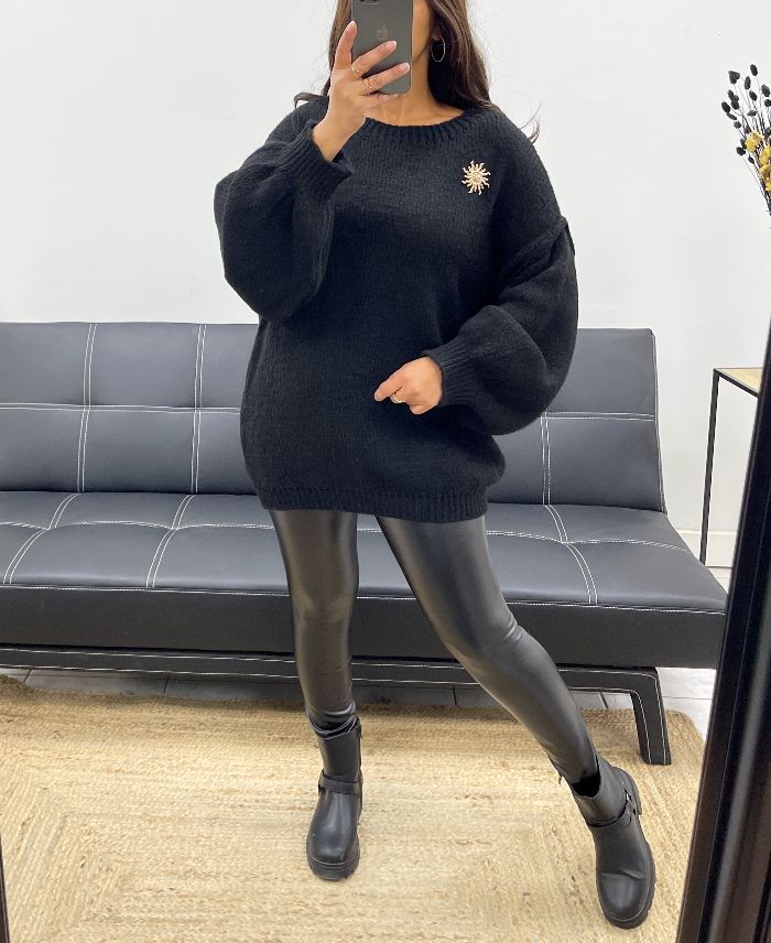 SWETER OVERSIZE Z BROSZKĄ ZE SŁOŃCEM AH255111