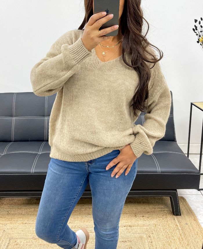 MIĘKKI WEŁNIANY SWETER AH255001 CAMEL