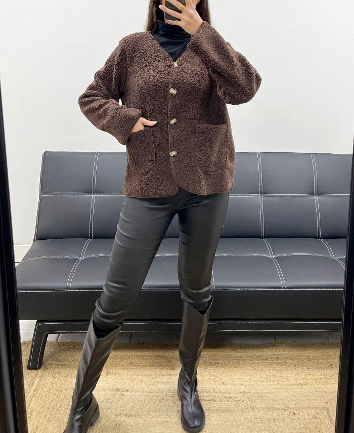 WEŁNIANA KURTKA Z 2 KIESZENIAMI AH250713 CZEKOLADOWA