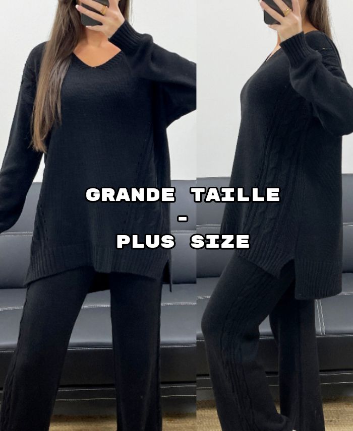 SWETER PLUS SIZE Z DZIANINY + SPODNIE AH250721