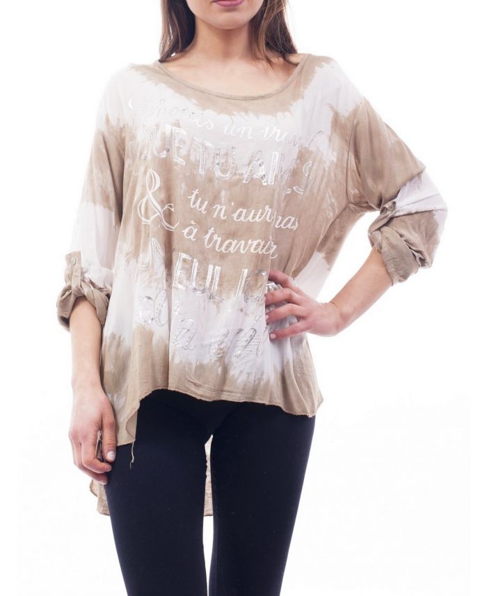 T-SHIRT TIE-DYE IMPRIME S9117 TAUPE