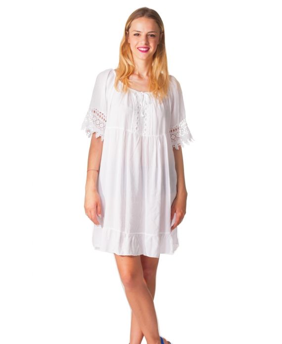 ROBE TUNIQUE DENTELLE S9330 BLANC