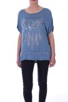 T-SHIRT PLUMES STRASS 9029 BLEU