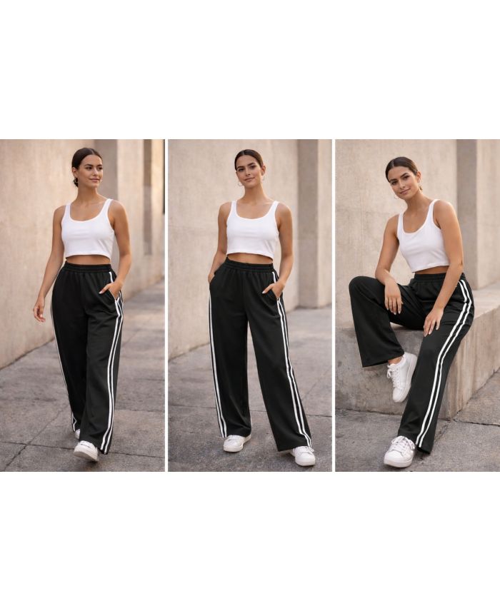 Spodnie z 2 PASKAMI I SZEROKIMI KIESZENIAMI PE2301 CZARNE