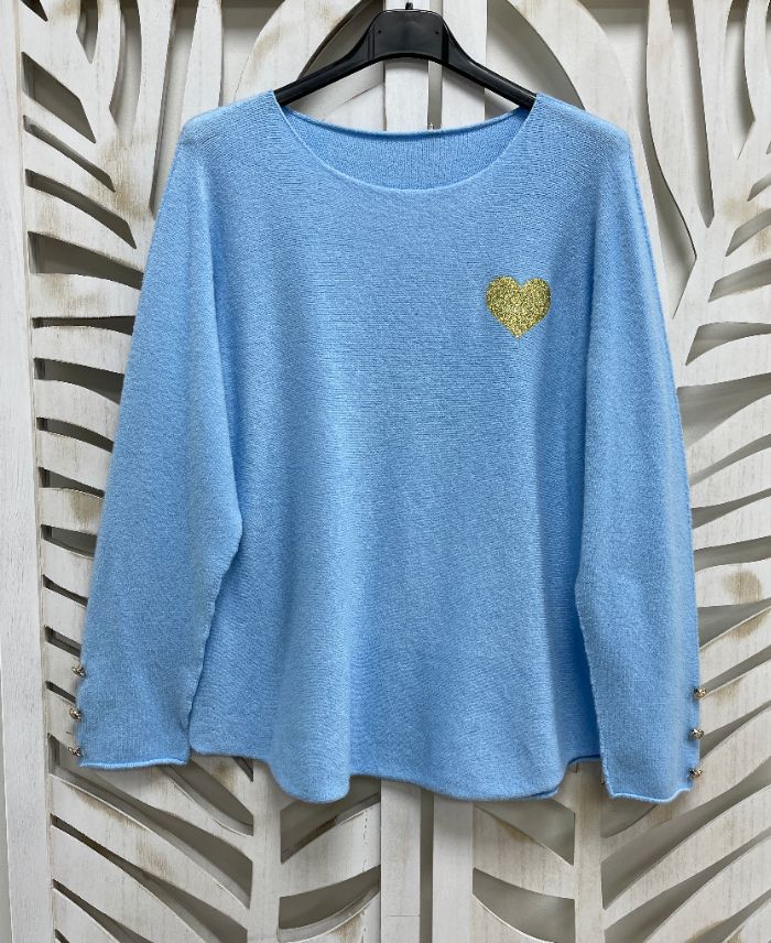 SWETER W KSZTAŁCIE SERCA Z GUZIKAMI I GUZIKAMI PE2354 NIEBIESKI