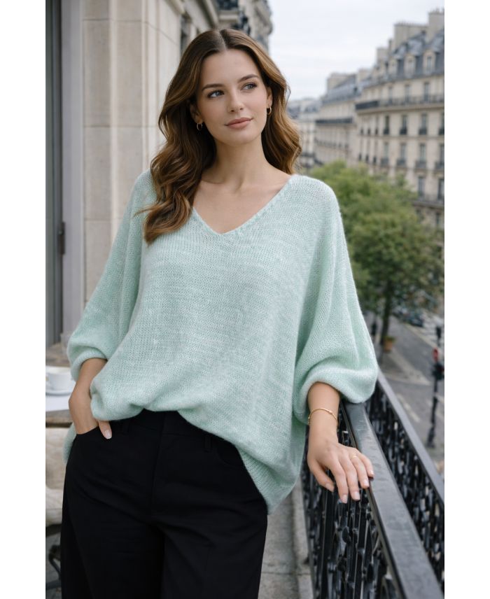 SWETER Z DEKOLTEM W SEREK PE2360 PASTELOWA ZIELEŃ