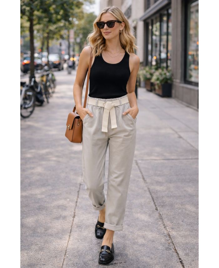 SPODNIE Z GUMKĄ W TALII Z 2 KIESZENI + BEŻOWY PASEK PE2401