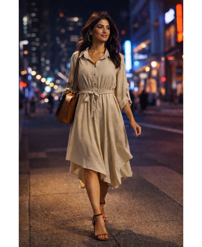 SUKIENKA ASYMETRYCZNA + PASEK PE2482 BEŻOWY