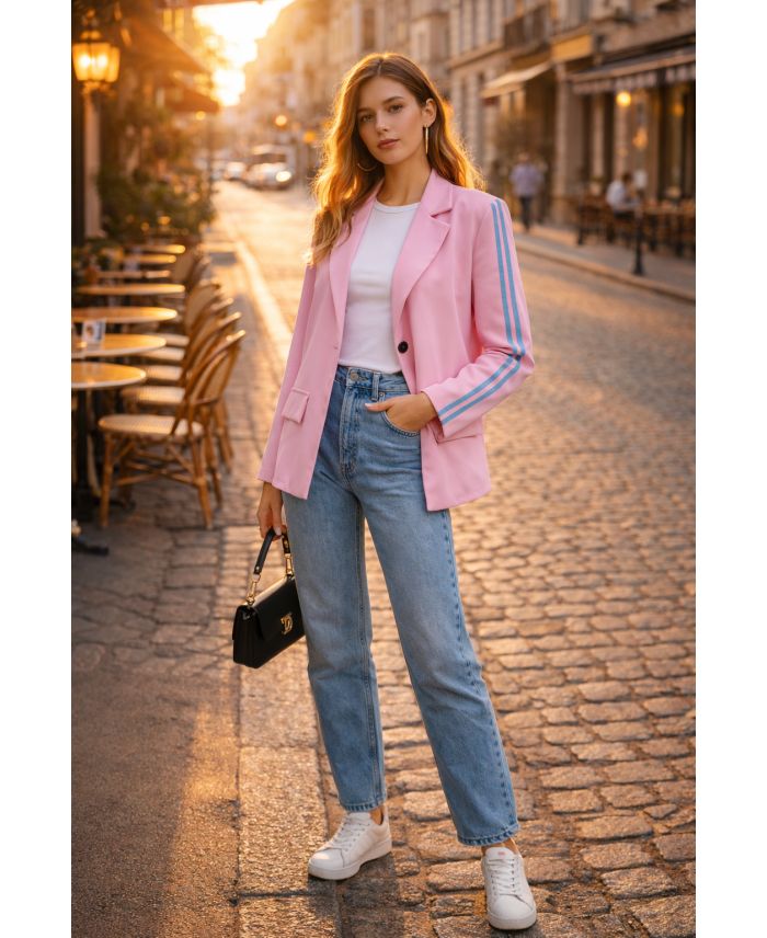KURTKA BLAZER Z 2 PASKAMI PE26764 RÓŻOWA