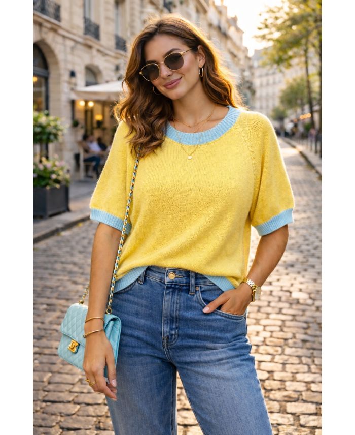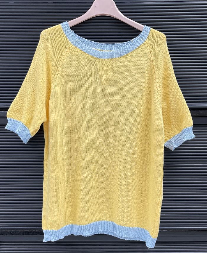 SZYKOWNY DWUKOLOROWY SWETER TRICOL PE260636 ŻÓŁTO-NIEBIESKI
