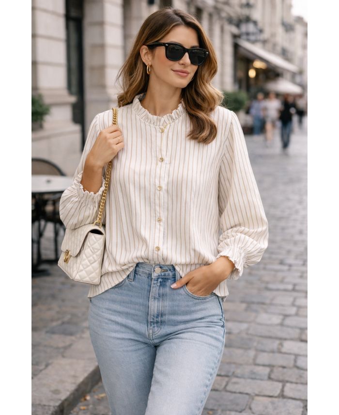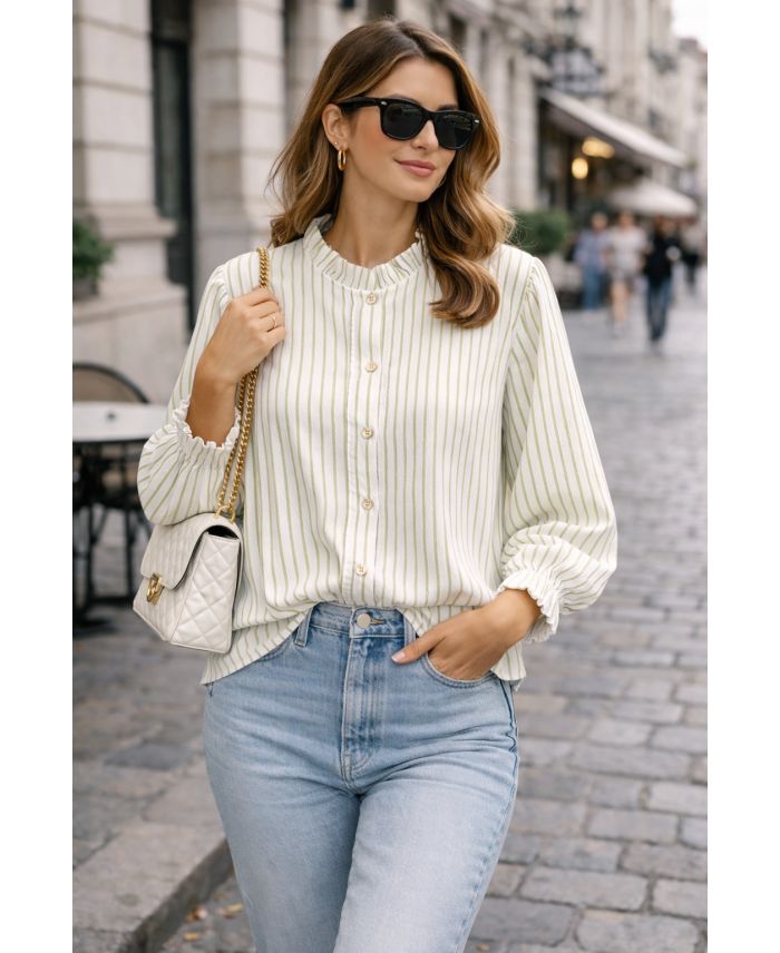 KOSZULA W PRĄŻKI Z WYSOKIM KOŁNIERZEM PE2227