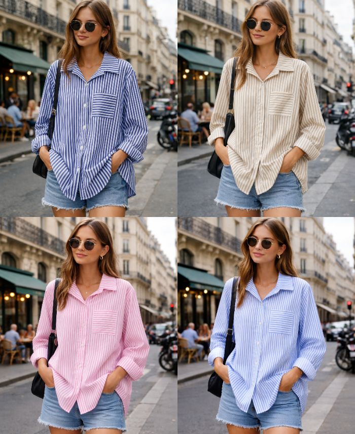 KOSZULA W PASKI Z KIESZONKĄ PE2254
