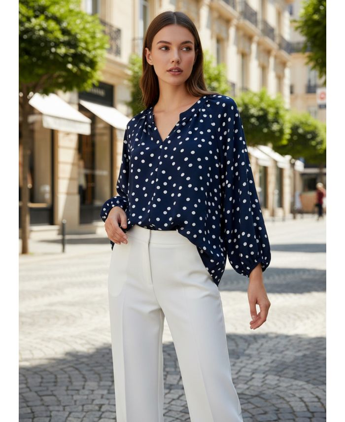 BLUZKA W KROPKI SS2095 GRANATOWA