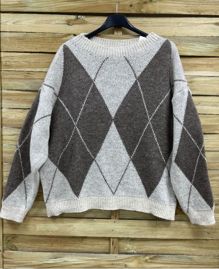 PE2115 DIAMENTOWY SWETER DZIANINOWY BEŻOWY