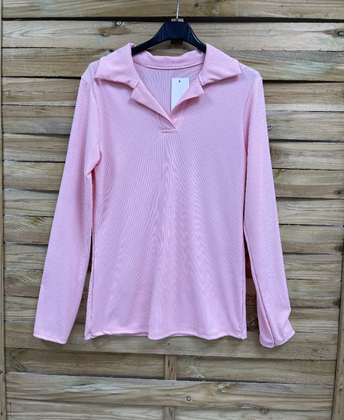 PRĄŻKOWANY KOŁNIERZYK POLO Z KOŁNIERZYKIEM PE2156 RÓŻOWY